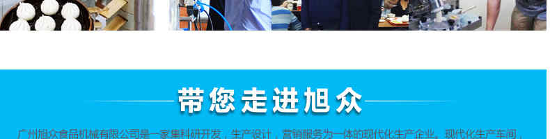 廣州旭眾食品機(jī)械有限公司是一家集科研開發(fā),生產(chǎn)設(shè)計(jì),營銷服務(wù)為一體的現(xiàn)代化生產(chǎn)企業(yè)?,F(xiàn)代化生產(chǎn)車間,精湛制造技術(shù),所產(chǎn)機(jī)械歷經(jīng)市場(chǎng)重重考驗(yàn),不斷贏得海內(nèi)外客戶的贊譽(yù)。